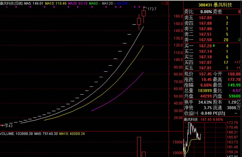 發(fā)行價(jià)7.14元的暴風(fēng)科技,上市之后,居然連拉29個(gè)漲停板,截止近日最高摸至172.7元,成為中國股市2015年當(dāng)之無愧的妖股之一。