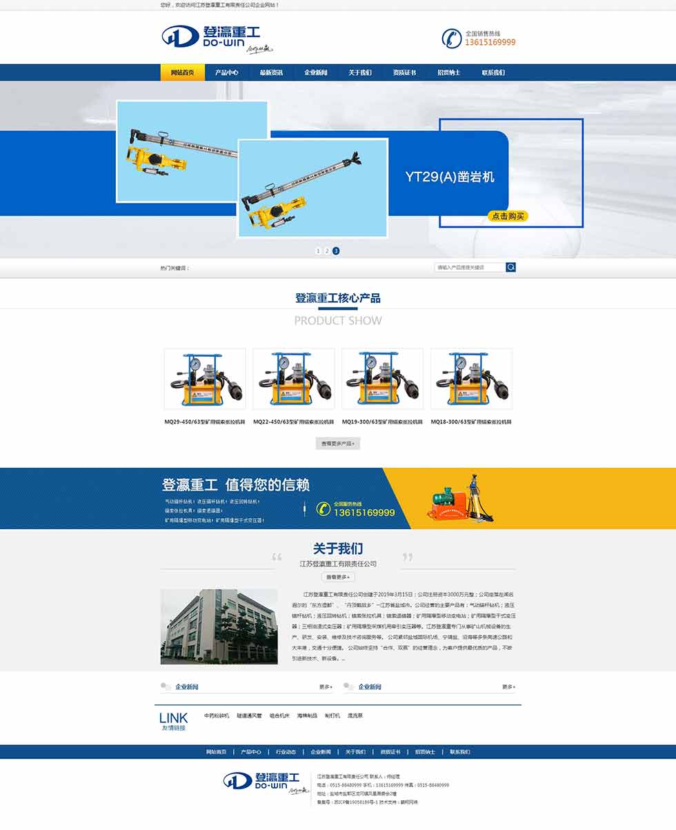 江蘇登瀛重工有限責(zé)任公司創(chuàng)建于2019年3月15日;公司注冊(cè)資本3000萬(wàn)元整。公司經(jīng)營(yíng)的主要產(chǎn)品有:氣動(dòng)錨桿鉆機(jī);液壓錨桿鉆機(jī);液壓回轉(zhuǎn)鉆機(jī);錨索張拉機(jī)具;錨索退錨器;礦用隔爆型移動(dòng)變電站;礦用隔爆型干式變壓器;三相油浸式變壓器;礦用隔爆型采煤機(jī)用牽引變壓器等。