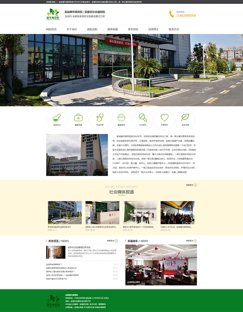 鹽城康年頤養(yǎng)院是2016年市、區(qū)政府實(shí)施的重點(diǎn)民生工程,總規(guī)劃用地92畝,整個(gè)工程分為兩期建設(shè),一期工程規(guī)劃用地為30畝,二期工程規(guī)劃用地為62畝。目前一期工程2幢樓已開(kāi)業(yè),1號(hào)樓建筑面積為15398㎡,共12層,是兒童、老年人、殘疾人康復(fù)護(hù)理中心;2號(hào)樓建筑面積為15240㎡,共15層,是老年人托養(yǎng)護(hù)理中心。一期工程設(shè)總床位618張,養(yǎng)老床位300張,護(hù)理床位214張,殘疾人床位104張。
