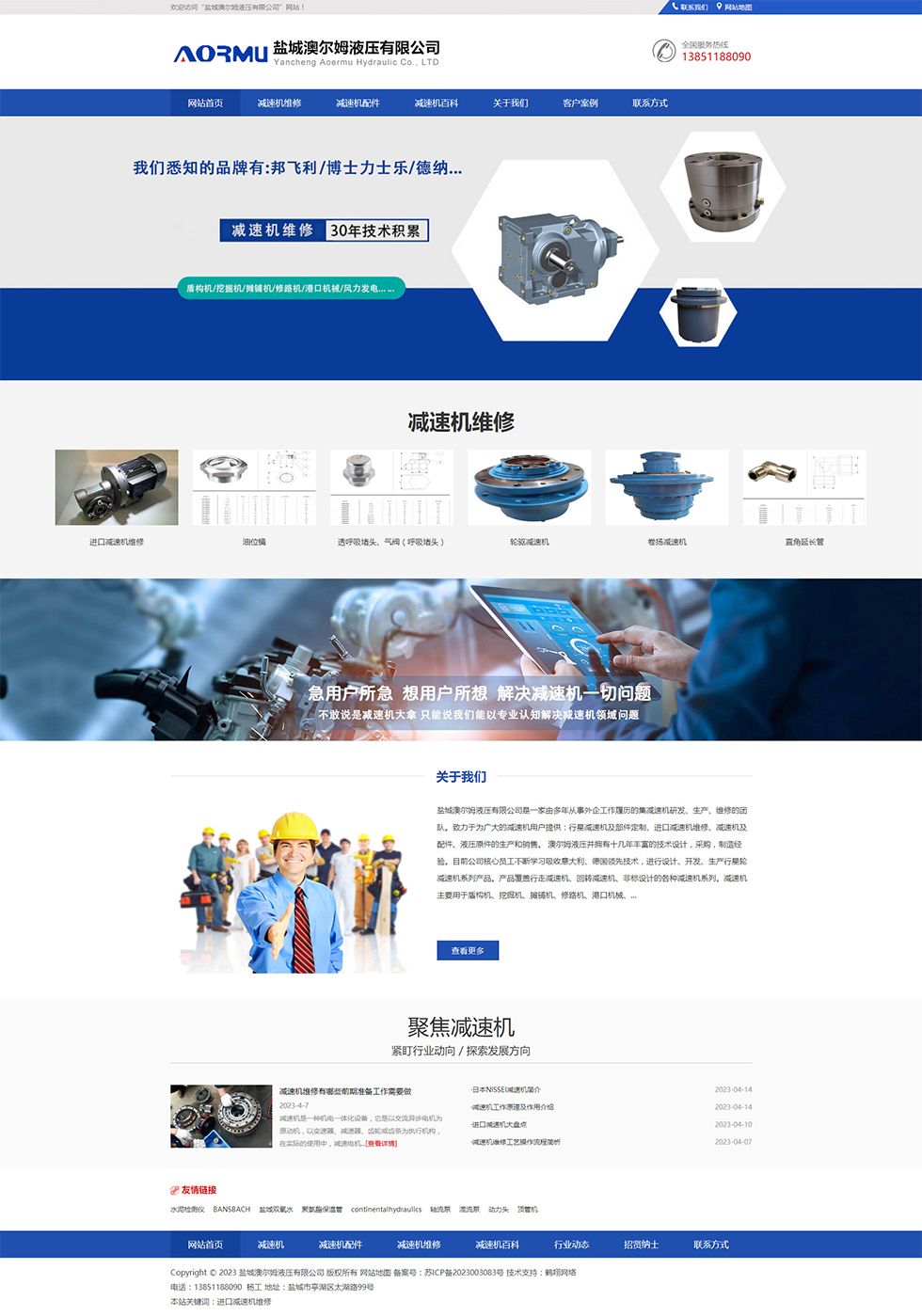 鹽城澳爾姆液壓有限公司是一家由多年從事進(jìn)口減速機維修的志同道合同仁共同組建的公司。致力于為廣大的減速機用戶提供:進(jìn)口減速機維修、國產(chǎn)減速機維修及減速機銷售。
