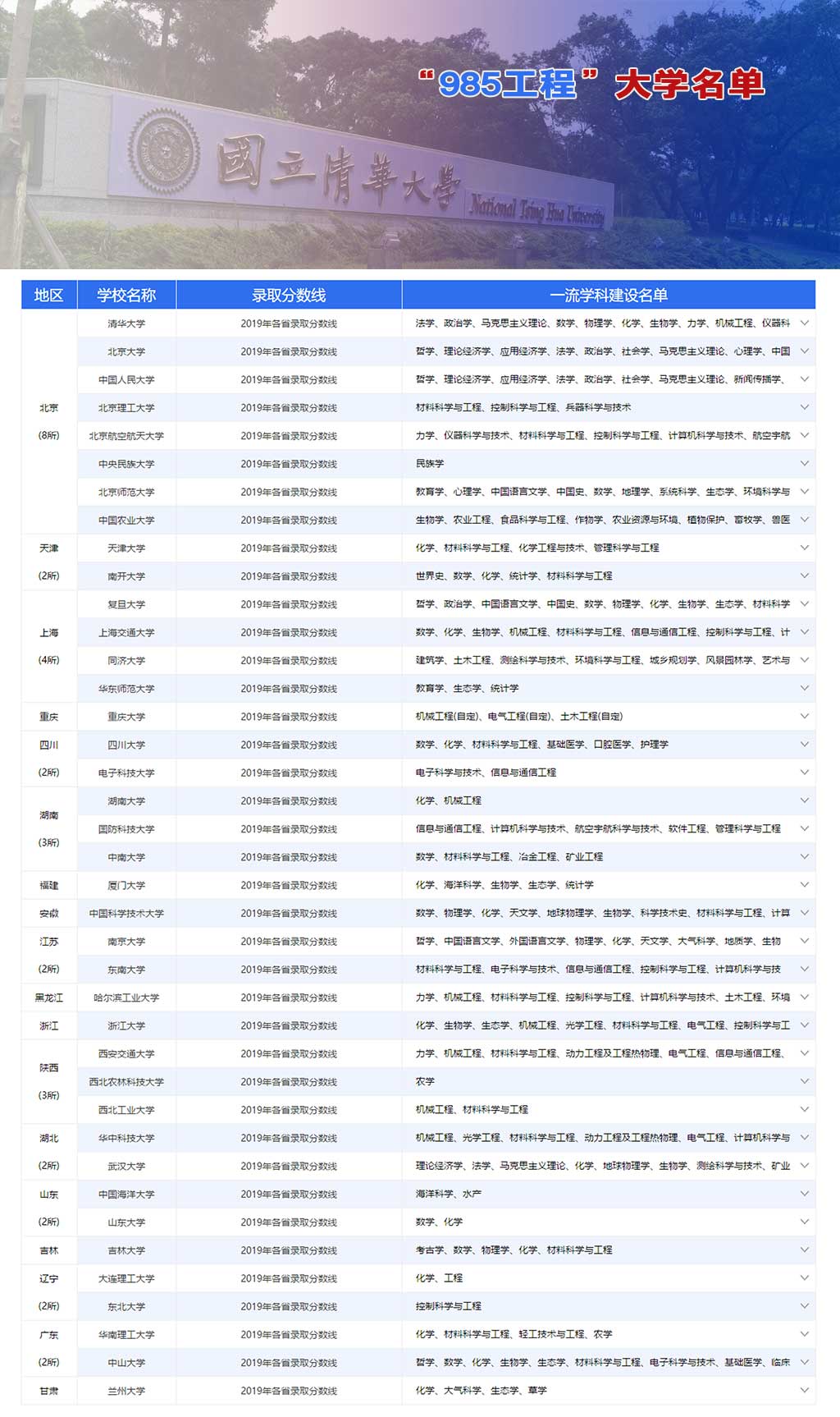 985學(xué)校名單一覽表