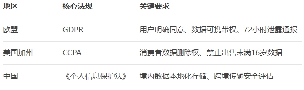 法律懲戒:歐盟GDPR罰款上限可達(dá)全球營(yíng)收4%,美國(guó)CCPA單次違規(guī)最高罰7500美元;