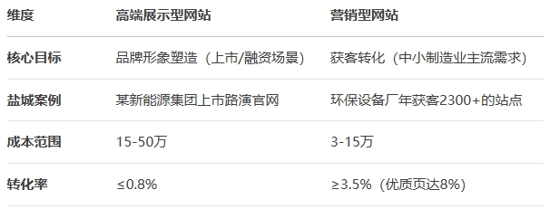 在鹽城制造業(yè)數(shù)字化升級的浪潮中,75%的企業(yè)面臨相同困境:該投入20萬做視覺炫酷的高端網(wǎng)站,還是打造10萬以內(nèi)能直接帶來訂單的營銷型網(wǎng)站? 作為服務(wù)超百家鹽城企業(yè)的建站服務(wù)商,我們用數(shù)據(jù)揭示本質(zhì)差異,助您精準(zhǔn)匹配業(yè)務(wù)需求。